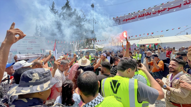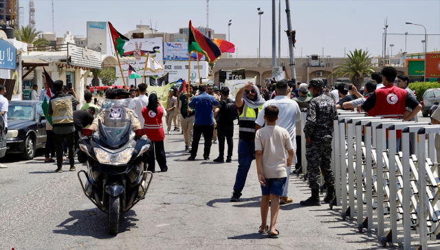 Filistin ve Libya bayrakları taşıyan ve tekbir getiren Misratalılar, konvoydaki Tunus ve Cezayirli aktivistlere gül armağan ederek üzerlerine gül yaprakları saçtı.