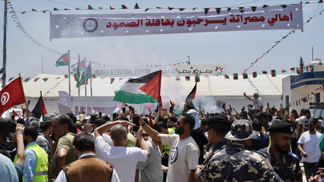 Gazze’deki ablukayı kırmak için yola çıkan Mağrip Direniş Konvoyu, Libya’nın Misrata kentindeki Uluslarası Fuar Merkezinde çok sayıda Libyalı tarafından karşılandı.